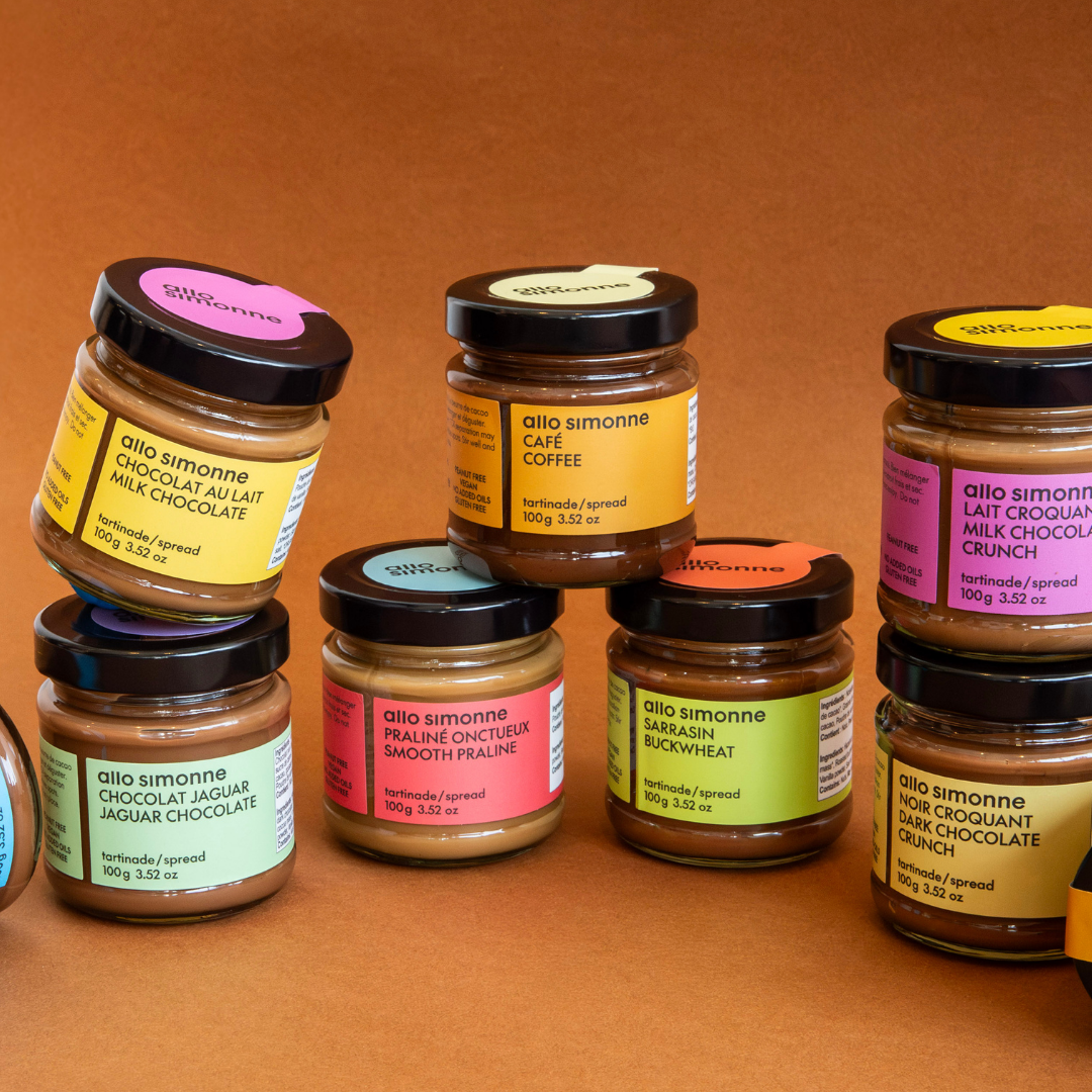 De la torréfaction à l’étiquetage, chaque pâte à tartiner et chaque tablette Allo Simonne est entièrement fabriquée dans notre atelier à Montréal. Nos produits à base de chocolat et de noisettes sont gourmands, sains, raffinés, adaptés à tous les palais et conçus à partir d’ingrédients de première qualité soigneusement sélectionnés.