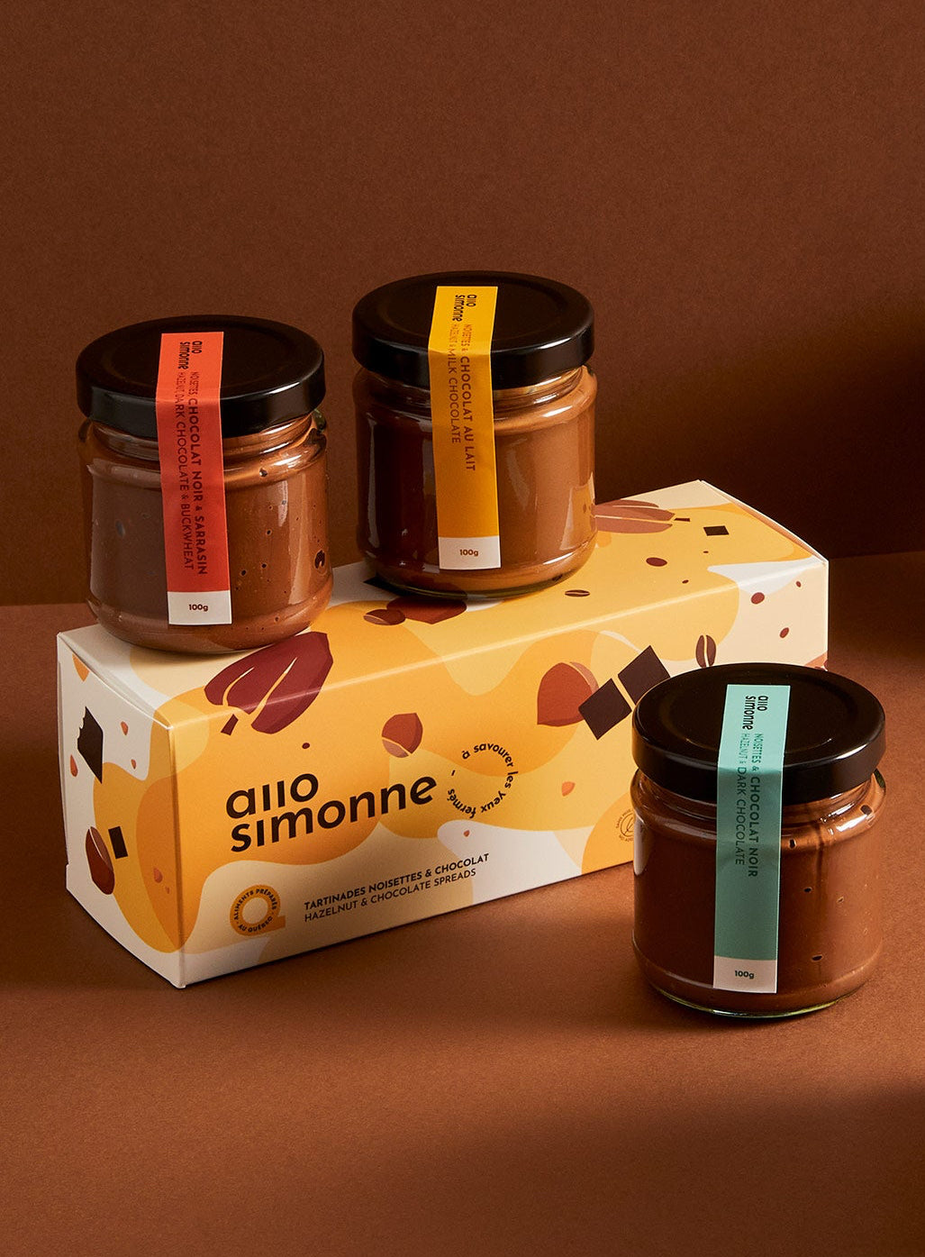 Our trio box is a great option to discover or to make discover 3 of our spreads.Please refer to each 220g product sheet to know the nutritional values and the list of ingredients.